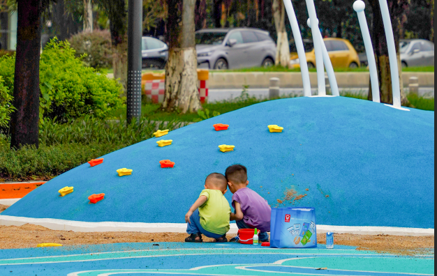 乐园的升级不仅体现在整体风貌的改变,更藏在诸多贴心细节中。“乐园整体铺装材质为EPDM,具有高弹性缓冲、防滑、环保耐热等特性。”项目负责人介绍,升级铺装材料能最大程度减少儿童摔倒时的磕碰伤害,为孩子们的奔跑嬉戏筑牢安全防线。