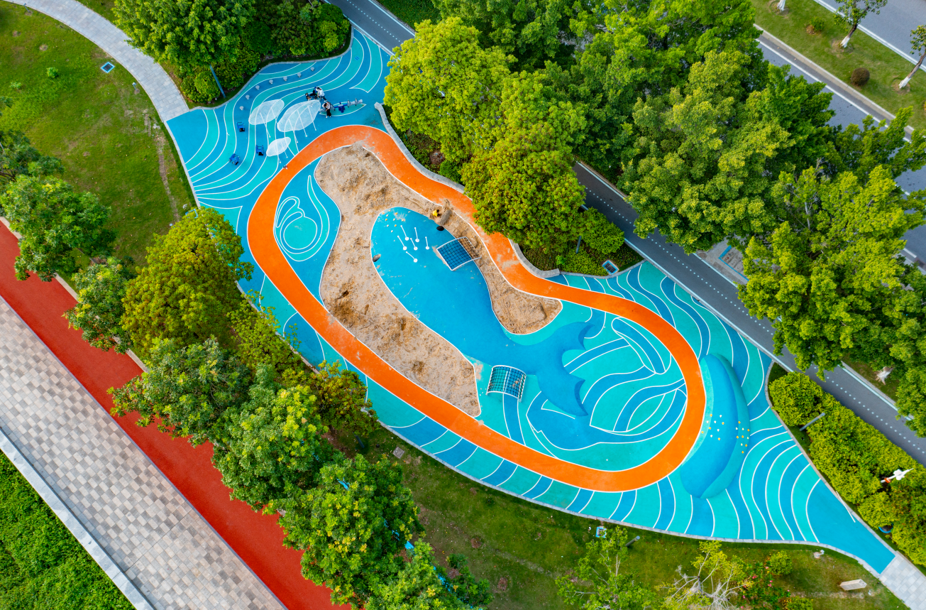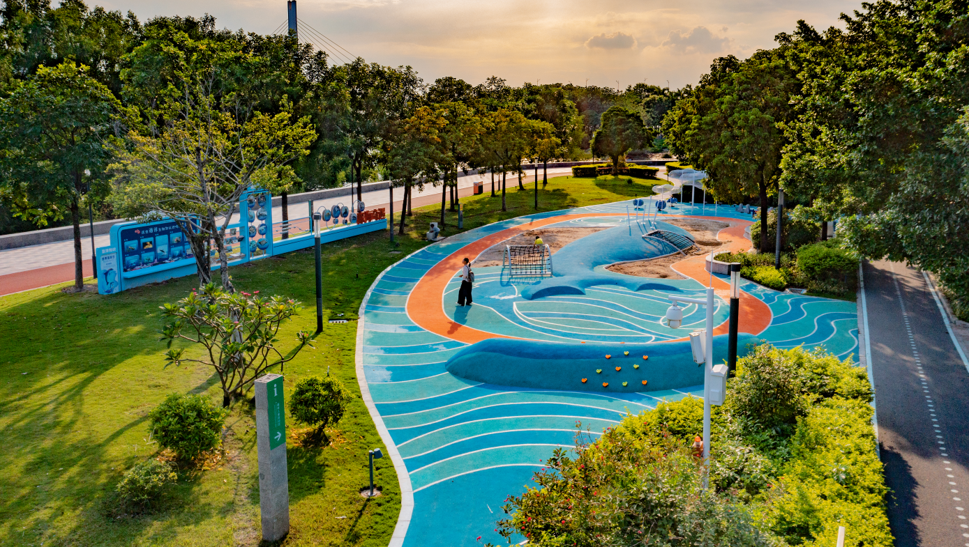 儿童海洋奇遇乐园是南沙体育馆周边环境提升工程的重要内容之一,以南沙海洋文化元素为起点,提取“沙滩、水流、鱼跃”等元素,围绕健康成长、探索互动、自然体验等功能,将原先功能相对单一的场地,打造成集趣味、科普、安全于一体的儿童游乐胜地。